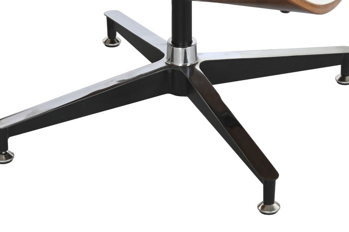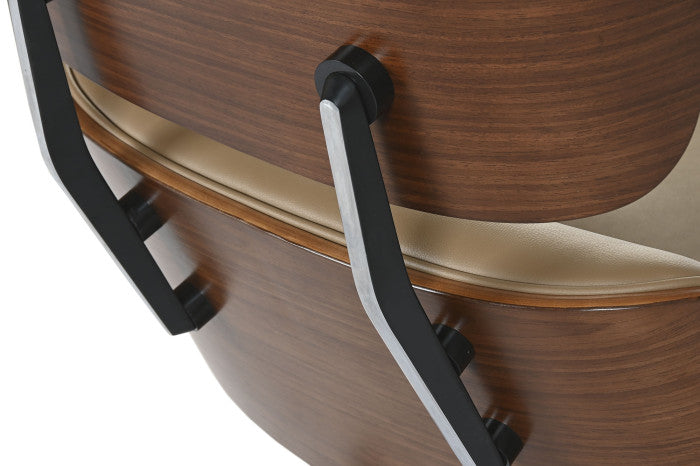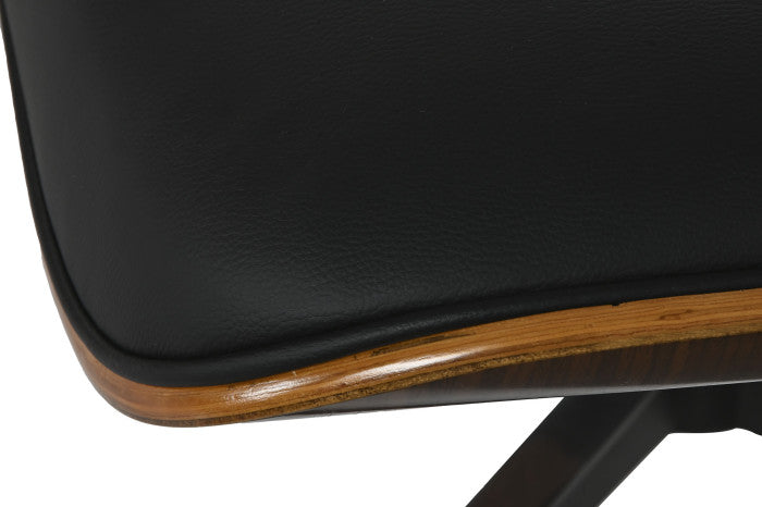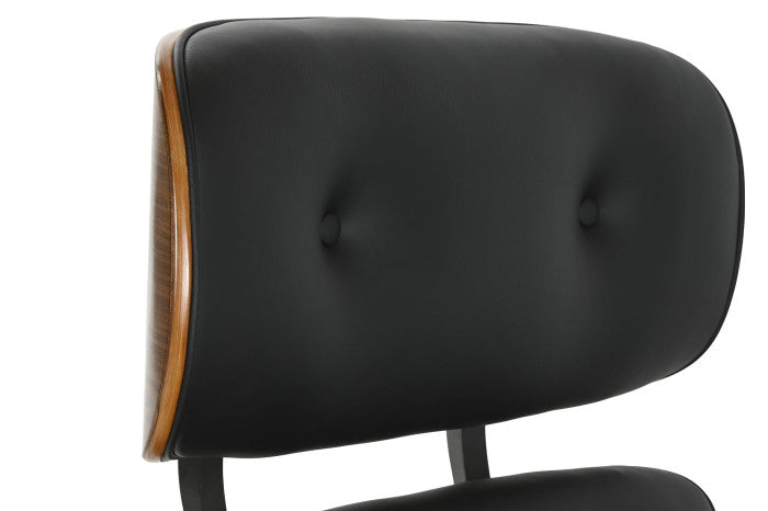 A diófa alap eleganciát és stabilitást biztosít, míg a poliuretán kárpit könnyen tisztítható, mégis puha tapintású. A fekete szín letisztult és elegáns megjelenést kölcsönöz a fotelnek, amely bármilyen modern belső térhez illeszkedik.