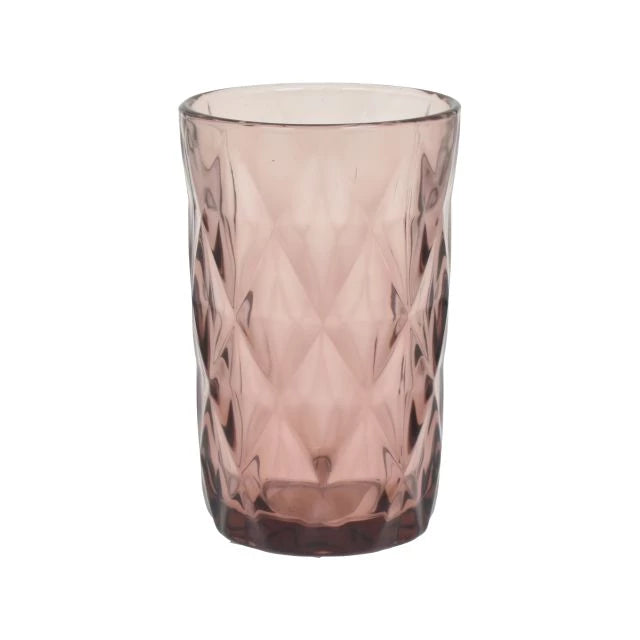 Fedezd fel a stílus és funkcionalitás tökéletes harmóniáját a mályva színű, mintás üvegpohárral, amely ideális választás long drinkek, koktélok vagy frissítők felszolgálásához. A 8 cm átmérőjű, 12,5 cm magas pohár űrtartalma 490 ml, így elegendő helyet biztosít jéggel és díszítéssel ellátott italokhoz is.