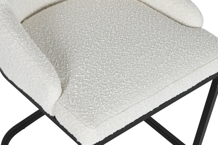 A fekete fém váz stabil alapot ad, amely hosszú élettartamot és masszív tartást garantál. A fehér poliészter huzat puha tapintású és könnyen tisztítható, így a mindennapi használat során is megőrzi letisztult, ápolt megjelenését.