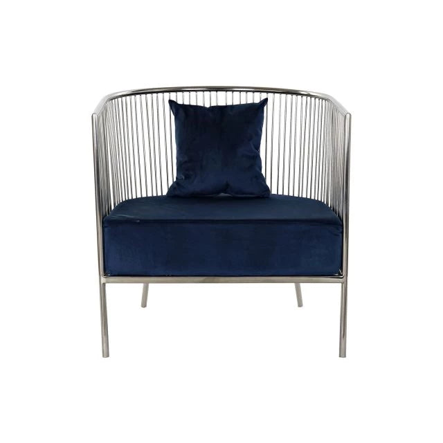 Modern Polieszter Fotel Acél Vázzal – Sötétkék, 66x69x70 cm