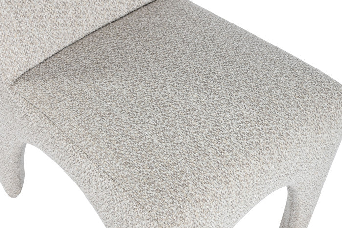 A poliészter kárpit puha tapintású, strapabíró, jól ellenáll a mindennapi használatnak, míg a szürke tónus eleganciát és könnyű kombinálhatóságot biztosít. A szék formája egyszerre letisztult és kortárs, így tökéletesen illik modern, skandináv vagy minimalista belső terekbe.